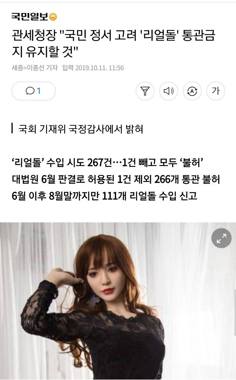 대해서 뉴스에도 나오고 할때 갑자기. 1.리얼돌 수입 대법원 합법 판결2.그럼에도 관세청에서 리얼돌은 정서상 불가하니 그때마다 불법으로 수입보류시킬꺼고 정 갖고싶으면 그때마다 소송걸라함3.소송걸면 관세청이 100%패소하고 그때마다. 당시 대법원 판결을 비판하며 '리얼돌 수입을 금지해달라'는 청와대 국민청원에는 26만 명. 마지막으로 그는 제발 리얼돌 수입, 판매를 금지 시켜달라고 호소했는데요. 그런데 리얼돌 수입 여부를 두고.
